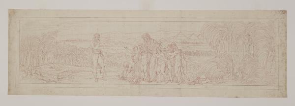 - NOTIZIE STORICO CRITICHE Si tratta di uno dei disegni preparatori che furono eseguiti in vista della traduzione in incisione del grandioso ciclo decorativo dedicato ai Fasti di Napoleone e realizzato da Appiani nella Sala delle Cariatidi di Palazzo Reale a Milano, fra 1800 e 1807. Il successo delle tele dipinte a tempera a monocromo fu tale che già nel 1805, quando l'intervento pittorico era ancora in corso d'opera, il viceré Eugenio di Beauharnais, per ordine di Napoleone, commissionò allo stesso Appiani una traduzione calcografica, di cui l'imperatore voleva servirsene per fini propagandistici. A capo dell'impresa fu nominato Giuseppe Longhi, tra i massimi incisori dell'epoca e professore all'Accademia di Brera, coadiuvato dallo stesso Appiani, che ne curò la supervisione; tra gli incisori che collaborarono all'operazione, furono scelti Giuseppe Benaglia, Michele Bisi e Francesco e Giuseppe Rosaspina. Per mantenere gli effetti pittorici del monocromo, si scelse di utilizzare la tecnica dell'acquaforte ritoccata a bulino. Sebbene non vi siano notizie certe sulla paternità dei disegni preparatori per le tavole, è plausibile che fu lo stesso Appiani a realizzarli, o, almeno, a supervisionarne l'esecuzione. I fogli furono poi affidati ai collaboratori: a Longhi fu lasciata l'esecuzione delle matrici relative alle scene principali, che servirono poi da modello per gli altri acquafortisti. Il disegno mostra un Napoleone meditabondo, un motivo fino ad allora mai utilizzato nella pittura ufficiale per rappresentare il futuro imperatore, e che, probabilmente, costituisce un unicum nell'iconografia del generale. La figura femminile davanti alla quale Napoleone è assorto è stata identificata con la Francia, ma probabilmente potrebbe raffigurare l'Italia, secondo una descrizione che ne aveva dato Vincenzo Monti nell'ode "Dopo la Battaglia di Marengo", o, più probabilmente, la Repubblica Cisalpina. La scena, particolare, illustrerebbe il momento di maggior crisi della campagna in Egitto, di fronte a cui Napoleone scelse il ritorno in patria. Davanti a lui, la figura allegorica femminile, quasi implorante, accompagnata dai fanciulli, "invoca il ritorno salvifico di Napoleone, mentre a terra giacciono gli emblemi delle arti, delle scienze e dei mestieri e la cornucopia, simboleggianti la perduta prosperità della nazione" (Bairati, Pivetta, Raponi 1997, p. 132). I numerosi cenni all'arte egizia indicherebbero le importanti campagne archeologiche condotte durante le operazioni militari.\nLa scena fu tradotta in incisione da Francesco Rosaspina.