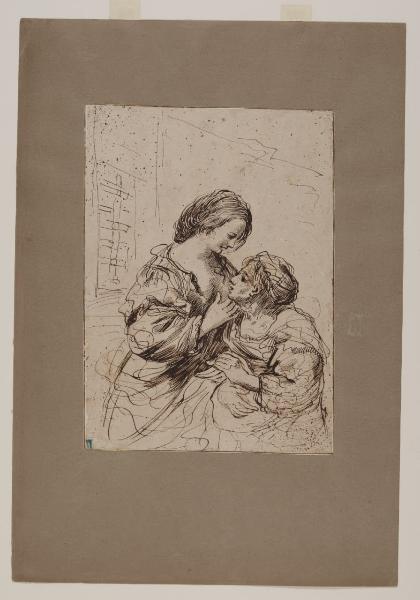 - NOTIZIE STORICO CRITICHE Il foglio è opera del cosiddetto falsario del Guercino, artista attivo tra il il 1760 e il 1800 che ne riuscì a interpretare il tratto grafico, reinventando paesaggi e figure secondo lo stile del maestro. \nIl disegno a penna deriva da un'incisione di Clemente Nicoli, tratta da un'opera a matita del Guercino conservata nella collezione di Pellegrino Gozoli.