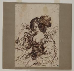 - NOTIZIE STORICO CRITICHE Il foglio è opera del cosiddetto falsario del Guercino, artista attivo tra il il 1760 e il 1800 che ne riuscì a interpretare il tratto grafico, reinventando paesaggi e figure secondo lo stile del maestro.\nIl modello da cui è tratto il disegno non è mai stato individuato.