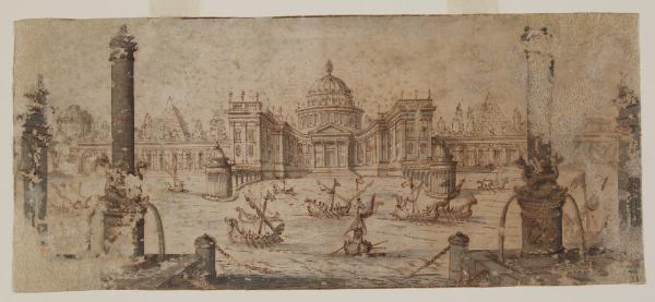 Veduta fantastica di un porto. Veduta fantastica di un porto