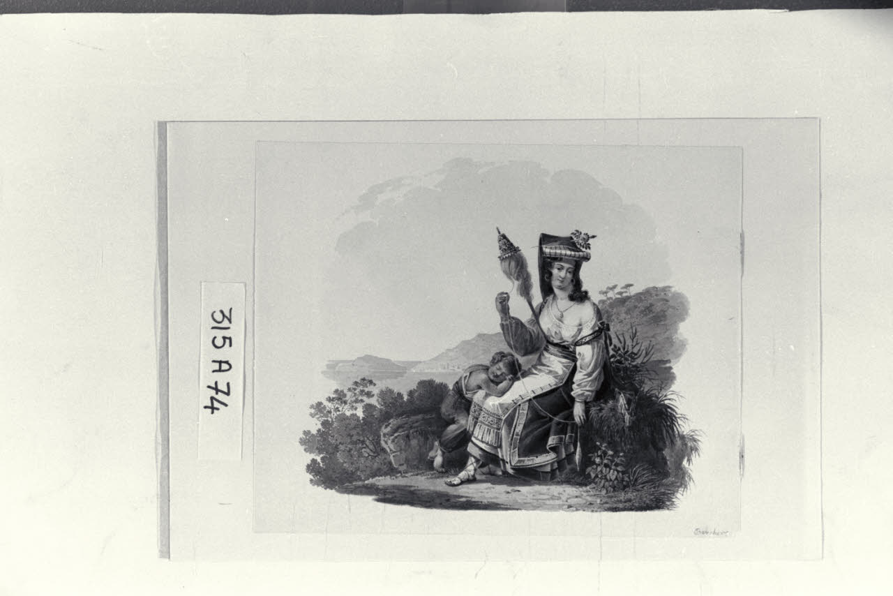 Giovane donna dell'Italia meridionale con un bambino