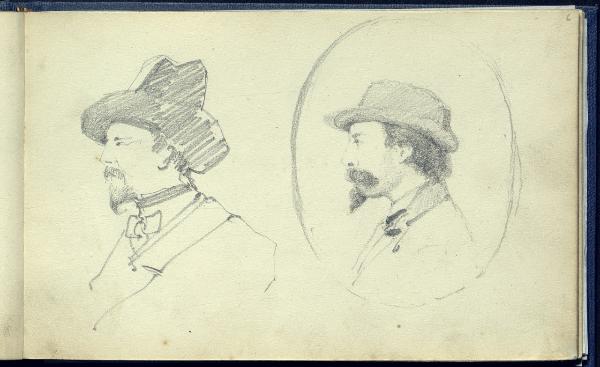 Due ritratti a mezzobusto di uomini barbuti con cappello visti di profilo