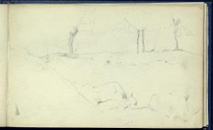 Abbozzo di paesaggio roccioso con alberi