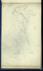 Abbozzo di paesaggio con uno scheletrocon un putto sulle spalle