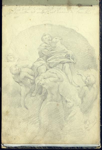 Rilievo dall'affresco del Correggio nella cupola sopra l'altare maggiore del Duomo di Parma con san Giovanni Battista