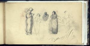 Schizzi di figurette maschili e femminili