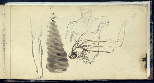 Studi per un torso maschile, una gamba e una figuretta femminile