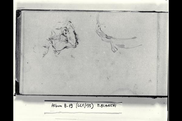 Schizzi di due profili maschili e di particolare ornamentale