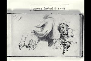 Studi di mani, profilo di una testa femminile e vecchio a mezzo busto