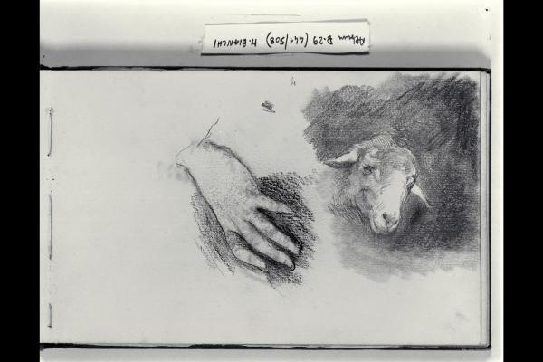 Studio di una mano e di una testa d'agnello