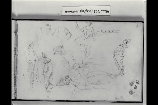 Abbozzi di teste e di figure di saltimbanchi e della figura di una ballerina