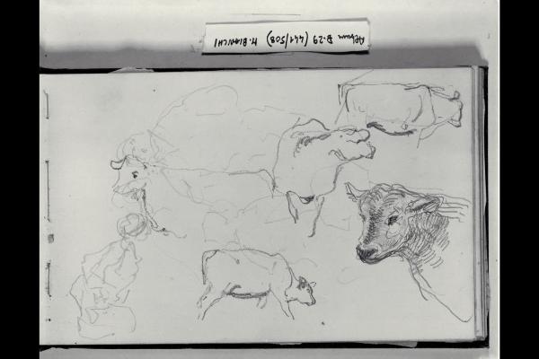 Schizzi di bovini e abbozzo di unua figuretta