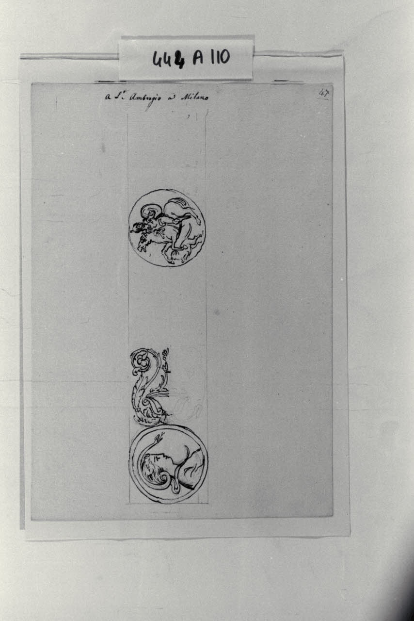 Rilievi di medaglioni e di un particolare di decorazione a S. Ambrogio a Milano. Rilievi di medaglioni e di un particolare di decorazione a S. Ambrogio a Milano