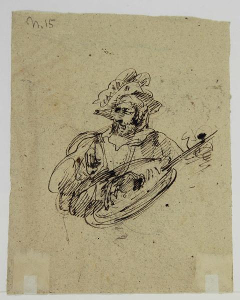 Mezza figura d'uomo in atto di suonare una mandola. Mezza figura d'uomo in atto di suonare una mandola