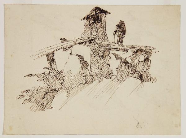 Ponticello fra le rocce con cappelletta e figuretta maschile. Ponticello fra le rocce con cappelletta e figuretta maschile