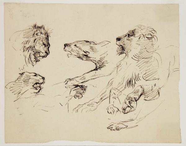 Studi di leoni e leonesse e di figura atterrata. Studi di leoni e leonesse e di figura atterrata