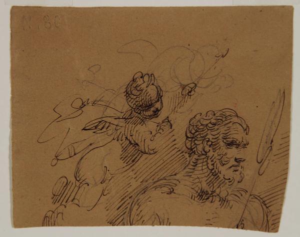 Testa d'uomo barbuto e putto alato. Testa d'uomo barbuto e putto alato