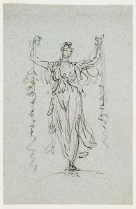 Figura femminile con in mano due festoni floreali. Figura femminile con in mano due festoni floreali