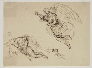 Apparizione di un angelo a una figura maschile dormiente nel deserto. Apparizione di un angelo a una figura maschile dormiente nel deserto