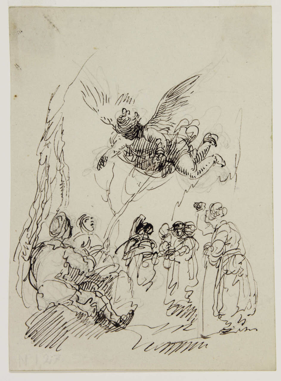 Apparizione di un angelo a un gruppo di persone. Apparizione di un angelo a un gruppo di persone