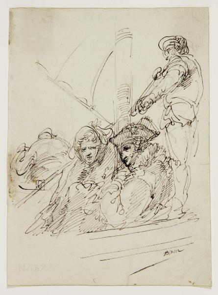 Due figure a mezzo busto in gondola e un gondoliere. Due figure a mezzo busto in gondola e un gondoliere