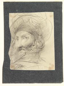 Testa d'uomo barbuto con turbante. Testa d'uomo barbuto con turbante