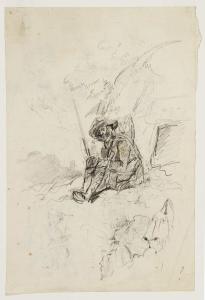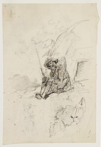 Abbozzo di paesaggio con cacciatore seduto. Abbozzo di paesaggio con cacciatore seduto