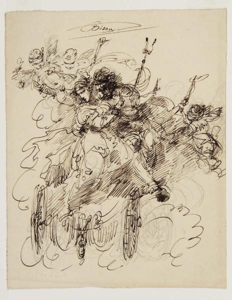Composizione mitologica con due figure abbracciate e puttini. Composizione mitologica con due figure abbracciate e puttini