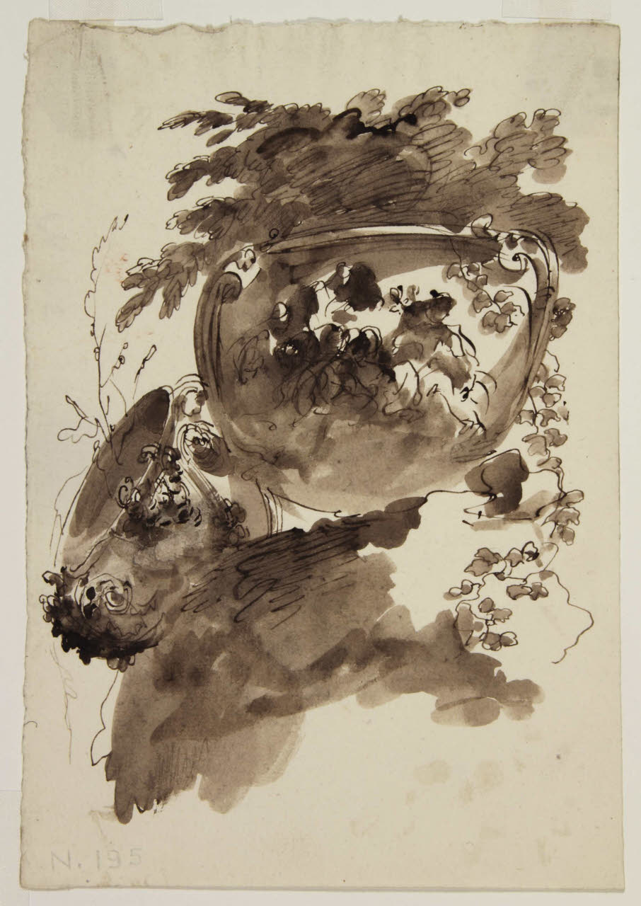 Studio di due vasi con decorazioni e con fogliame. Studio di due vasi con decorazioni e con fogliame