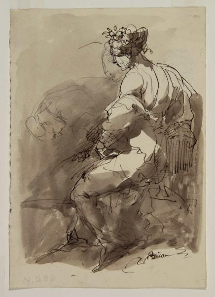 Studio di figura femminile seduta e voltata di tre quarti. Studio di figura femminile seduta e voltata di tre quarti