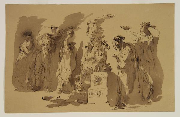 Composizione con cinque figure che compiono un'offerta votiva. Composizione con cinque figure che compiono un'offerta votiva