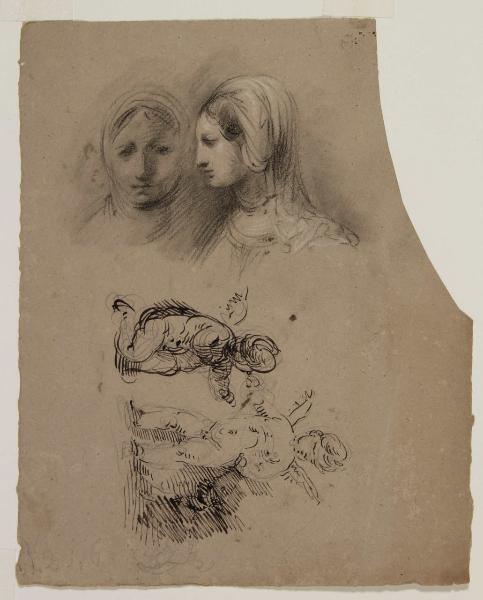 Studio di due teste femminili e di due putti alati. Studio di due teste femminili e di due putti alati