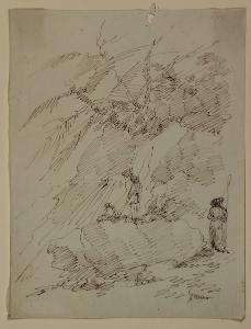 Particolare di paesaggio montuoso con macchiette. Particolare di paesaggio montuoso con macchiette