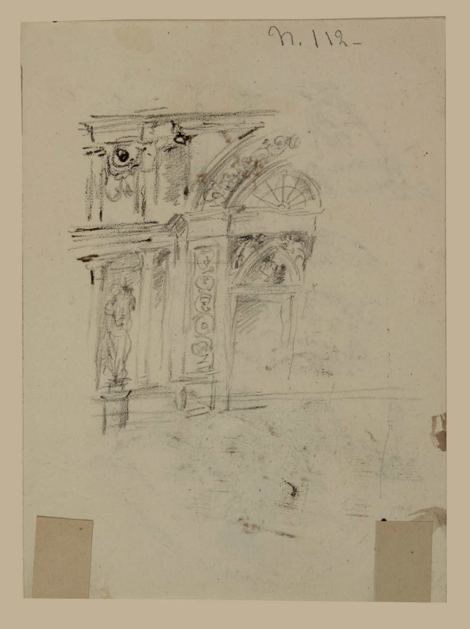 Studio di veduta architettonica con ornamenti. Studio di veduta architettonica con ornamenti