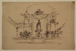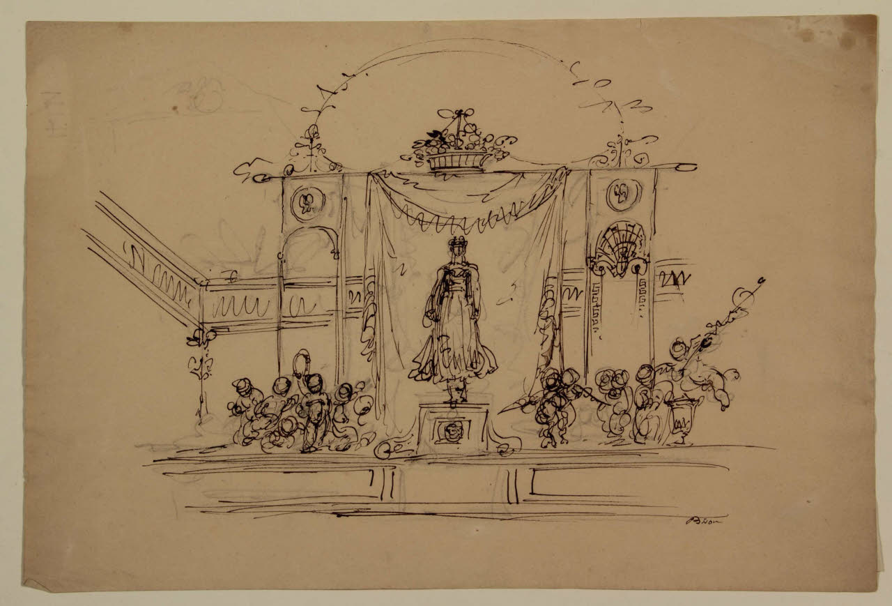 Studio di composizione ornamentale con figure, vasi e decorazioni floreali. Studio di composizione ornamentale con figure, vasi e decorazioni floreali