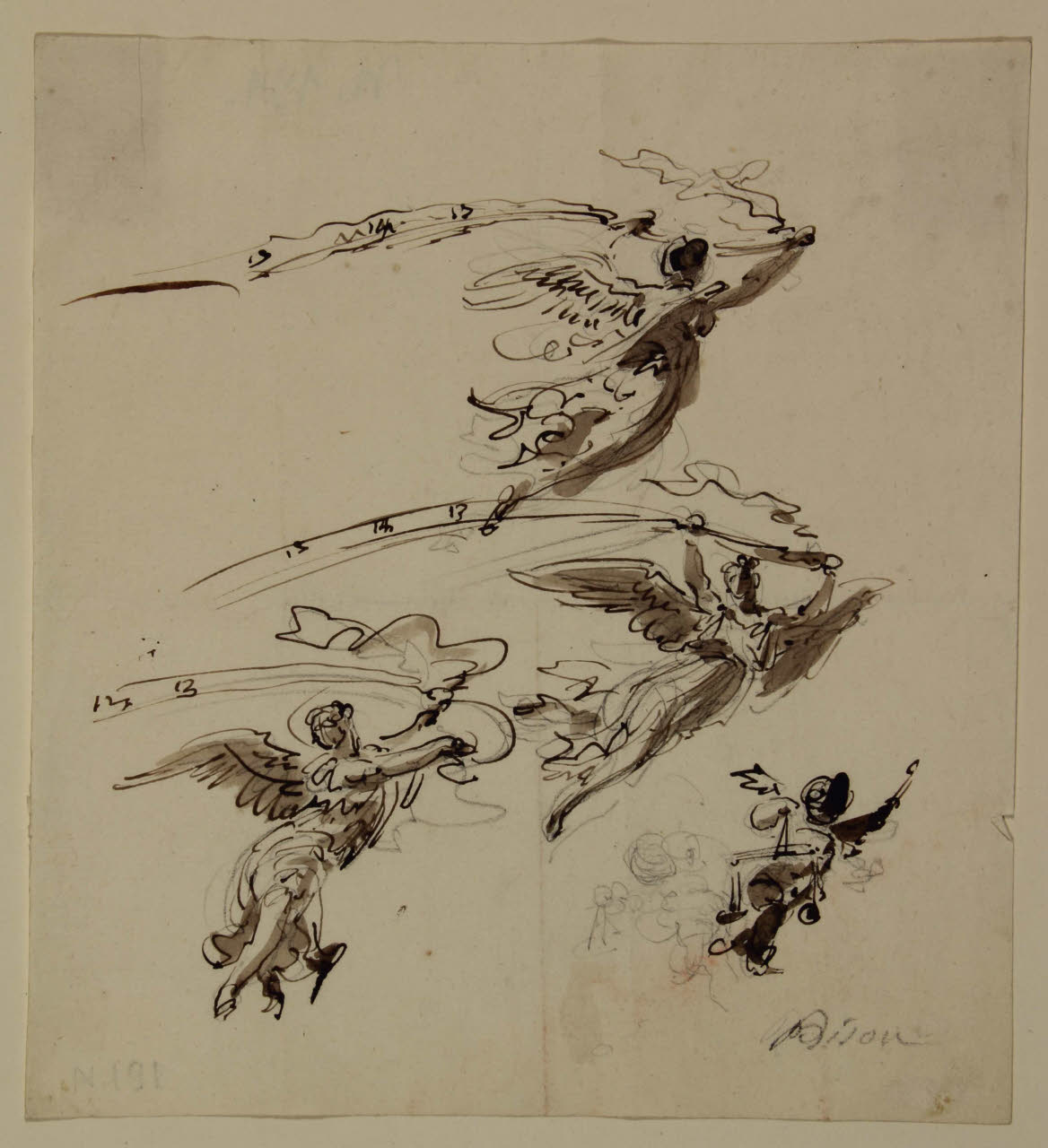 Tre angeli e un puttino in volo. Tre angeli e un puttino in volo