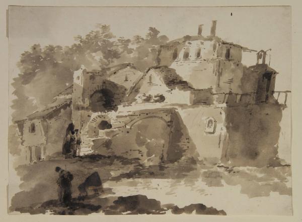 Paese con casolari e macchiette. Paese con casolari e macchiette