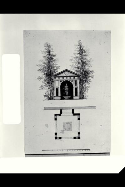 Progetto per un tempietto con statua classica