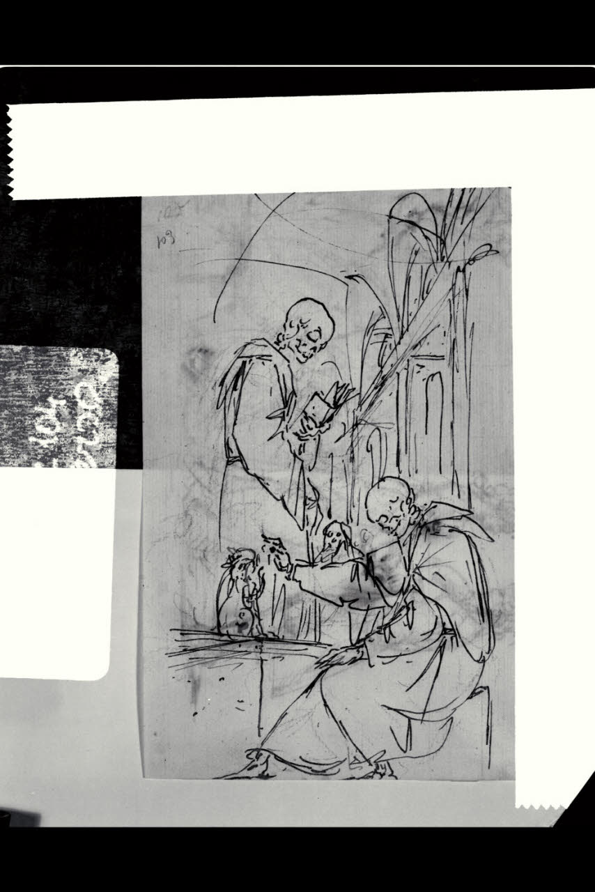- NOTIZIE STORICO CRITICHE Il foglio potrebbe essere un pensiero alternativo per il pannello con "Due frati in preghiera" del ciclo della chiesa bergamasca di Santa Grata inter Vites.\n