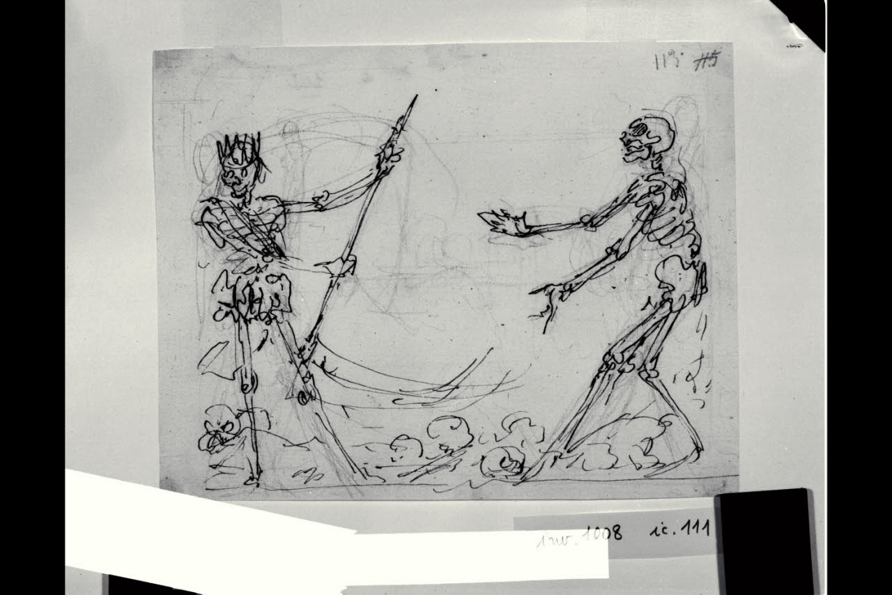 Morte regina e scheletro implorante