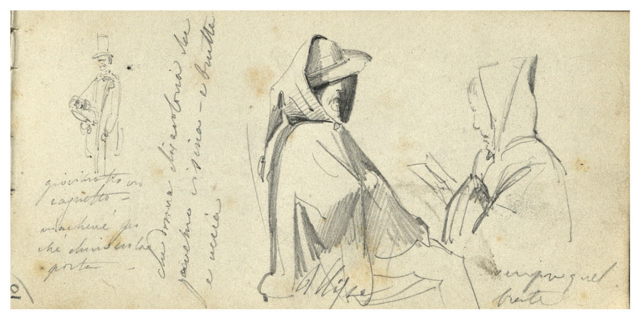 Giovinastro con cagnetto; Ulisse e un frate (Taccuino di viaggio di Giacomo Ulisse Borzino)