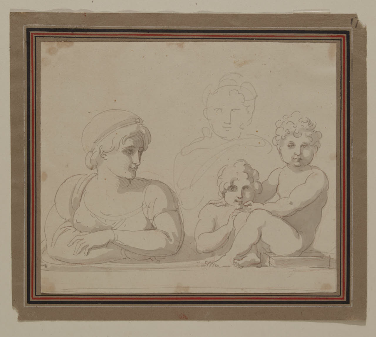carta/ sanguigna/ penna e inchiostro (grigio)/ pennello e inchiostro diluito (grigio)