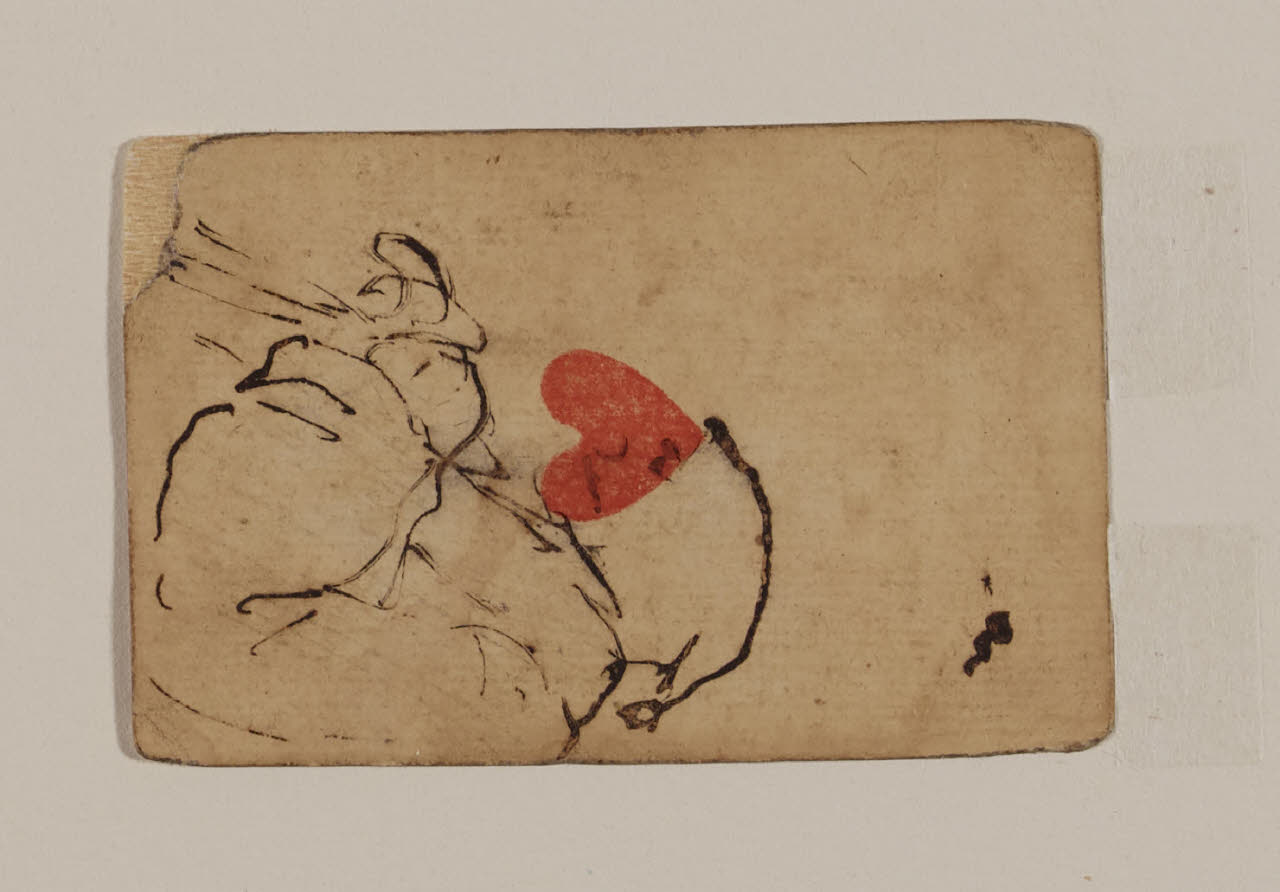 carta/ inchiostro a penna (inchiostro bruno)/ acquerello (rosso)