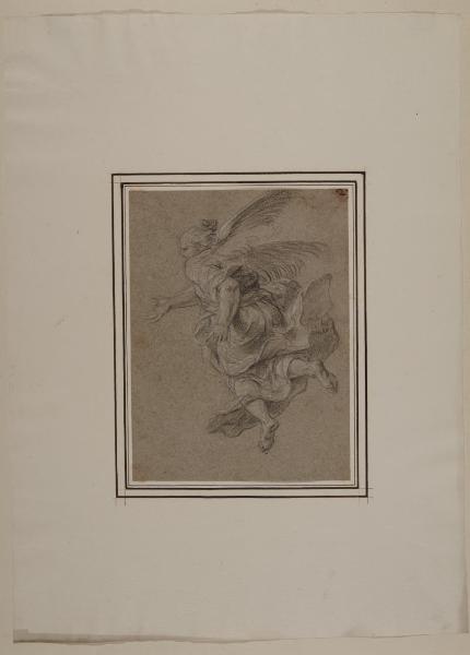 - NOTIZIE STORICO CRITICHE Il disegno fa parte di un nucleo di 34 fogli, alcuni dei quali noti agli studi, tutti realizzati a matita nera e gessetto bianco su carta grigia (eccezion fatta per uno, a matita rossa e gessetto bianco sempre su carta grigia). Tra questi, alcuni recano un'iscrizione attributiva di Giuseppe Bossi e un numero a penna; a livello stilistico (come confermato anche nei casi dei disegni pubblicati), la serie è ascrivibile alla mano del pittore barocco lombardo Antonio Busca. \nNell'inventario del 1814 dei beni di Alberico XII Barbiano di Belgioioso (trascritto in M. Forni, "Abitare da principe. Le residenze e le collezioni di Alberico XII Barbiano di Belgiojoso", 2020), nella Cartella G "che contiene i disegni antichi" sono registrati "33 tutti del Busca", stimati £ 66.