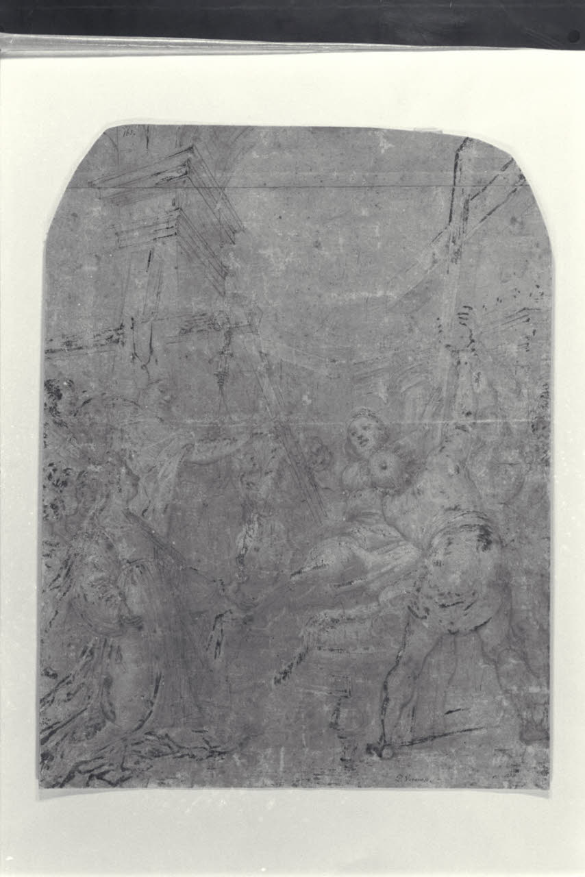 - NOTIZIE STORICO CRITICHE Il disegno è in relazione con la pala del "Ritrovamento della Vera Croce" eseguita da Gregorio pagani nel 1592 per la cappella di Ciro Alidosi ed Elena Mendoza per la Chiesa di Santa Maria del Carmine a Firenze, distrutta da un incendio nel 1770-71.\nUna riproduzione a stampa di questo disegno si trova in: "The Italian School Of Design: Being A Series Of Fac-Similes Of Original Drawings, By The Most Eminent Painters And Sculptors Of Italy; With Biographical Notices Of The Artists, And Observations On Their Works. By William Young Ottley", London: Printed For The Author, By J. McCreery, Tooks-Court, Chancery Lane; And Published By Taylor And Hessey, 13, Waterloo Place, And 93, Fleet-Street., 1823.\nLa tavola è stata incisa da Frederick Christian Lewis Snr. (1779 - 1856).\nQuesto prova che il disegno prima di entrare nella collezione di Thomas Lawrence, era appartenuto a William Young Ottley (fino al 1823).