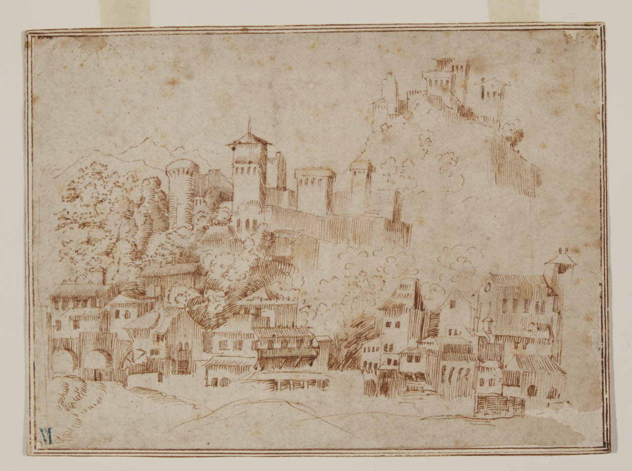 Paesaggio con borgo e due castelli. Paesaggio con borgo e due castelli