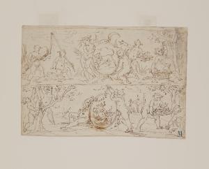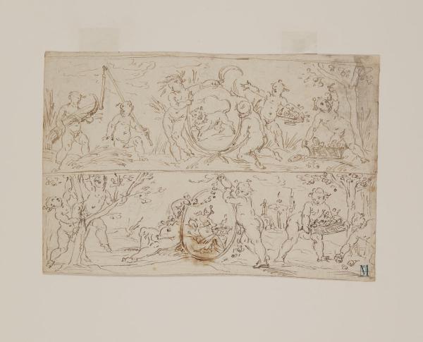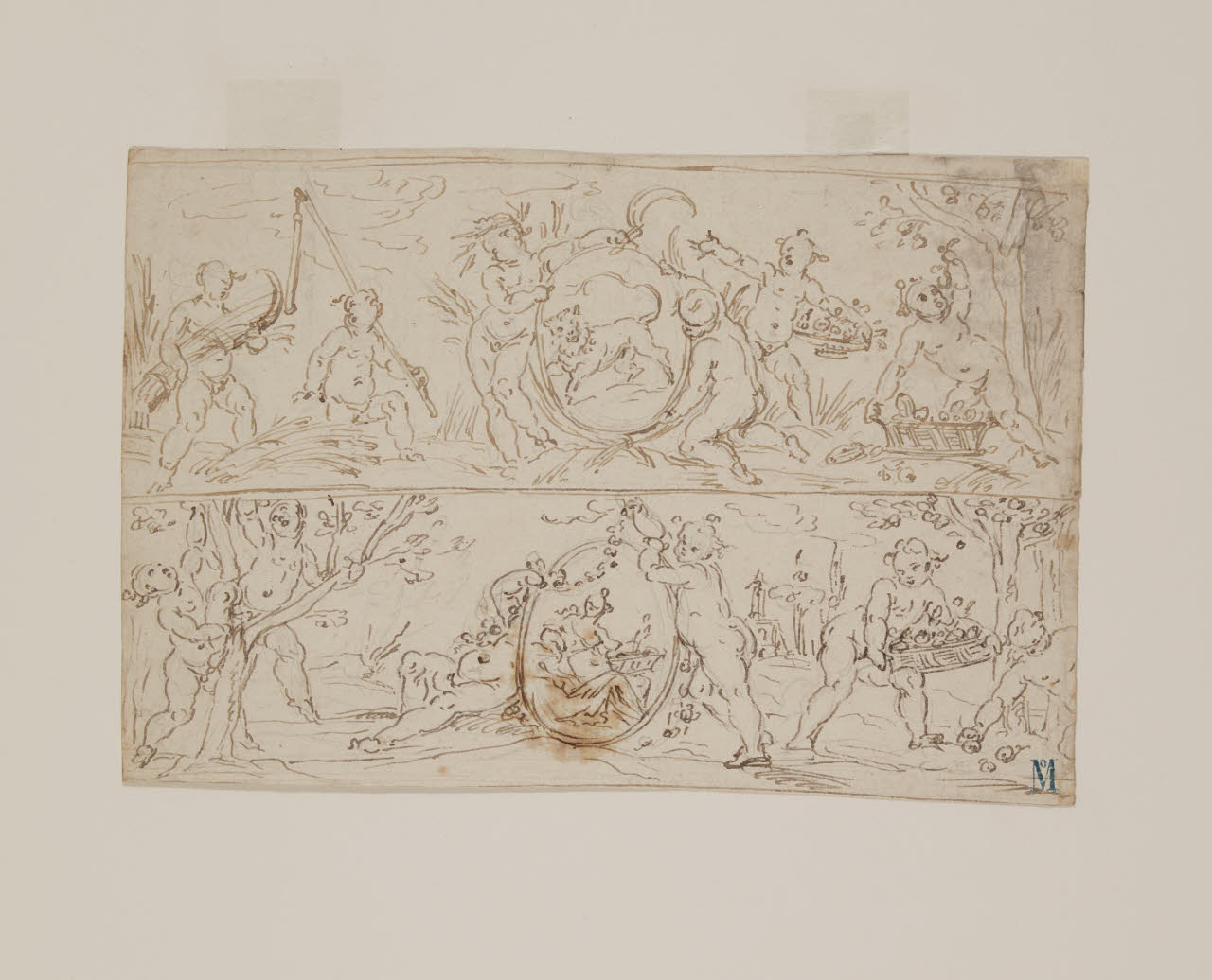 Mese di agosto, col segno del Leone: putti che mietono il grano e raccolgono frutti/ Mese di settembre, col segno della Vergine: putti che raccolgono frutti. Mese di agosto, col segno del Leone: putti che mietono il grano e raccolgono frutti/ Mese di settembre, col segno della Vergine: putti che raccolgono frutti