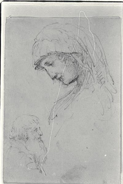 Testa di donna velata e testa di vecchio barbuto