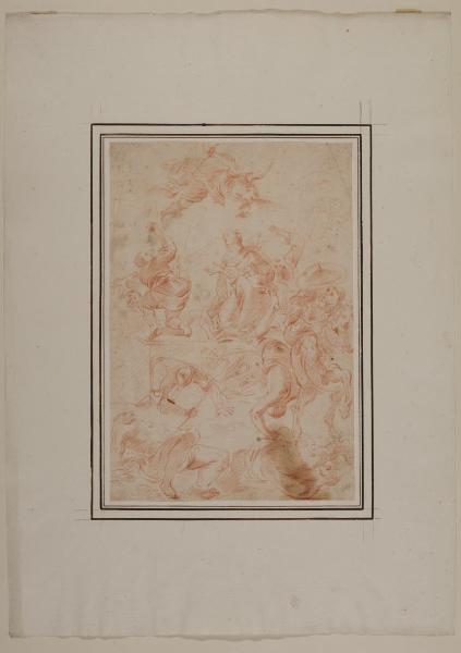 - NOTIZIE STORICO CRITICHE Questo foglio con Scena di martirio entrò nelle collezioni civiche nel 1943 per dono della famiglia Trivulzio. Già attribuito ad anonimo carraccesco nell'inventario storico del museo, e poi indicato nello stesso come copia da Guillaume Courtois detto il Borgognone, allievo di Pietro da Cortona a Roma, il foglio è preparatorio per un dipinto di Castellino Castello nella parrocchiare di Sestri Levante.