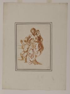 - NOTIZIE STORICO CRITICHE Nel 1944 Nicodemi attribuisce questo nucleo di undici disegni alla maturità di Giovanni Battista Castiglione, detto il Grechetto (curiosamente, non pubblica il foglio Au. D 65/13). Nel 2000 Morandotti inserisce i dodici disegni nel catalogo di Antonio Lagorio, tra i seguaci del genovese Valerio Castello. Notevole è la sintonia tra l'attività da disegnatore di Lagorio e le opere grafiche del Grechetto, come evidenziato non solo dai disegni del Castello Sforzesco, ma anche da un "Sant'Antonio che benedice una giovane donna inginocchiata" a pennello e olio su carta, passato all'asta da Sotheby's di New York il 12 gennaio 1994 (come opera genovese del Seicento) e rivisto nell'asta Finarte di Milano il 22 novembre 2000 (attribuito al Grechetto), appartenente quest'ultimo a padre Sebastiano Resta (Morandotti 2000). Tutti questi tredici fogli sono, secondo Morandotti, attribuibili a Lagorio per caratteristiche comuni quali la simile tecnica esecutiva, le tipologie dei volti, le scelte cromatiche. Nella scheda digitale è stata inserita, in epoca imprecisata, un'attribuzione dubitativa al pittore barocco genovese Giovanni Battista Merano (1632-1698).\nNella Mostra del disegno italiano di cinque secoli, tenutasi nel 1961 a Palazzo Strozzi a Firenze, il foglio viene considerato opera del Grechetto dallo spiccato e acceso cromatismo (Barocchi 1961). Quello della Carità è un tema molto caro al Lagorio, come evidente anche da alcuni suoi dipinti, in particolare uno di ubicazione ignota, contraddistinto da un utilizzo un poco estenuato del chiaroscuro e da sfumati che fanno emergere peculiarità tipiche del suo stile, quali le orbite degli occhi infossate e i nasi appuntiti (D. Sanguineti, "Ebbe il nostro Valerio quattro Discepoli, tutti di buona riuscita. Biscaino, Cervetto, Magnasco, Merano e la cerchia di Valerio Castello", in "Valerio Castello 1624-1629. Genio Moderno", 2008, p. 124, fig. a p. 123).